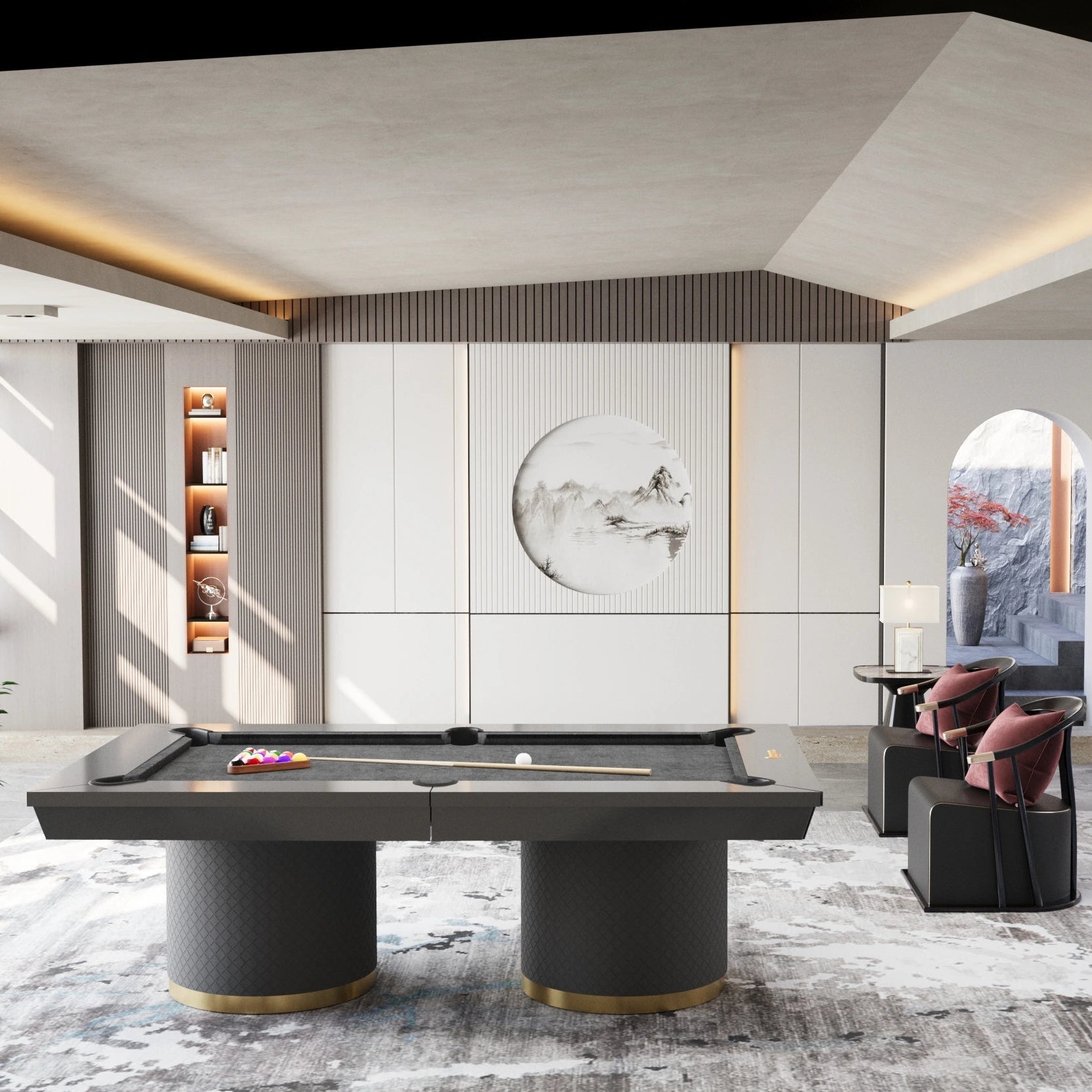 Every detail of the Angelic Feather Pool Table is carefully crafted to perfection. The two spherical pillar shaped bases not only provide unmatched stability but also add a touch of artistic elegance, setting it apart from traditional pool tables.