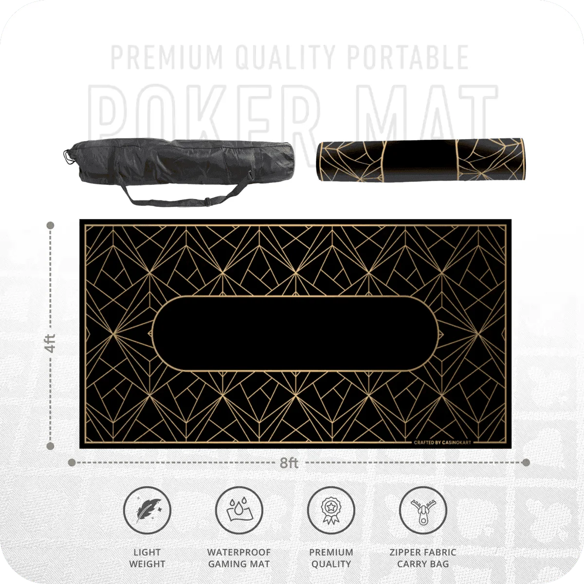 This premium-quality mat is designed specifically for card games, including poker and blackjack, providing a spacious playing surface that accommodates large groups. Its generous dimensions of 8x4ft make it ideal for both home use and events, ensuring all players have ample space for their cards and chips.