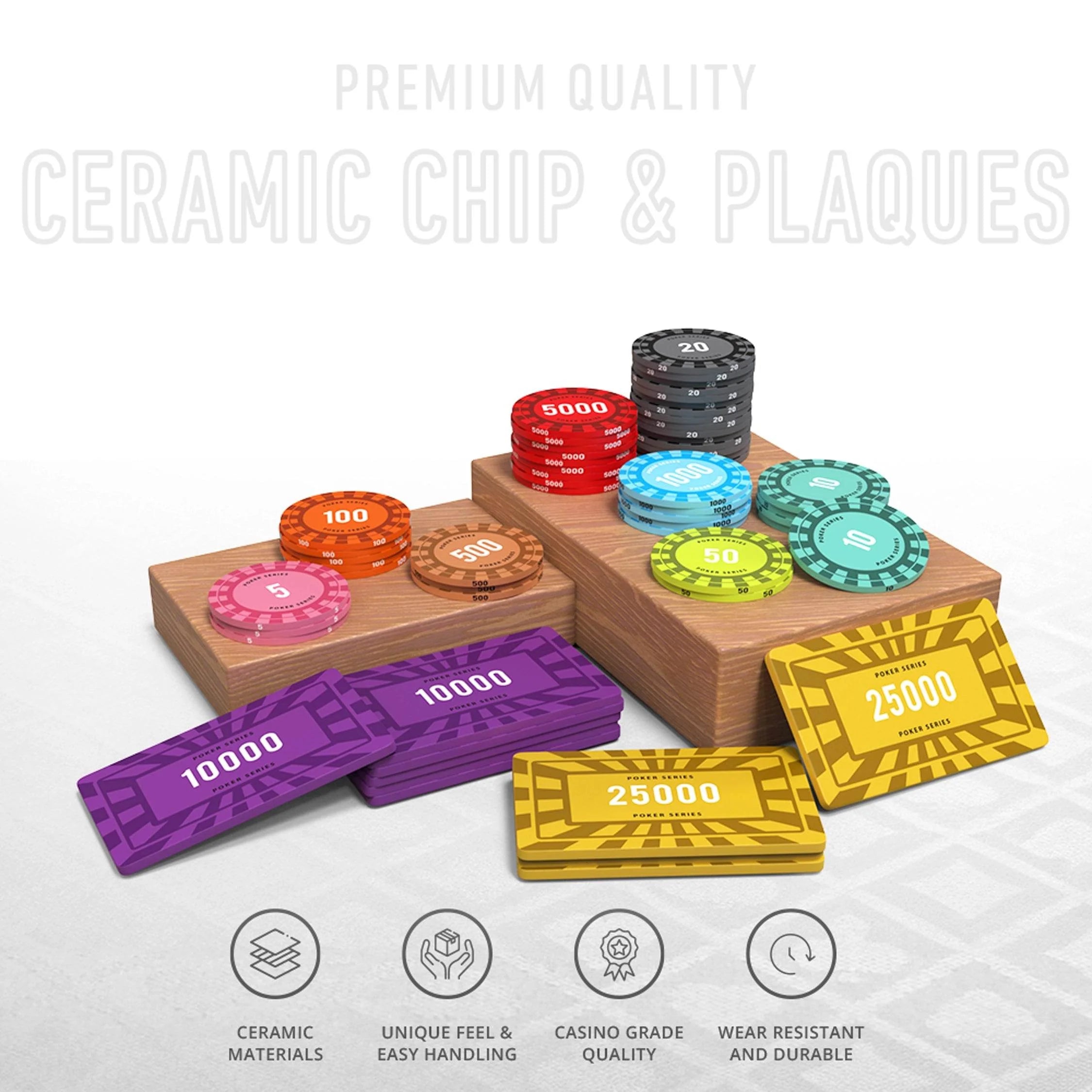 Plaque Denominations: 10000 and 25000 to accommodate various betting levels.