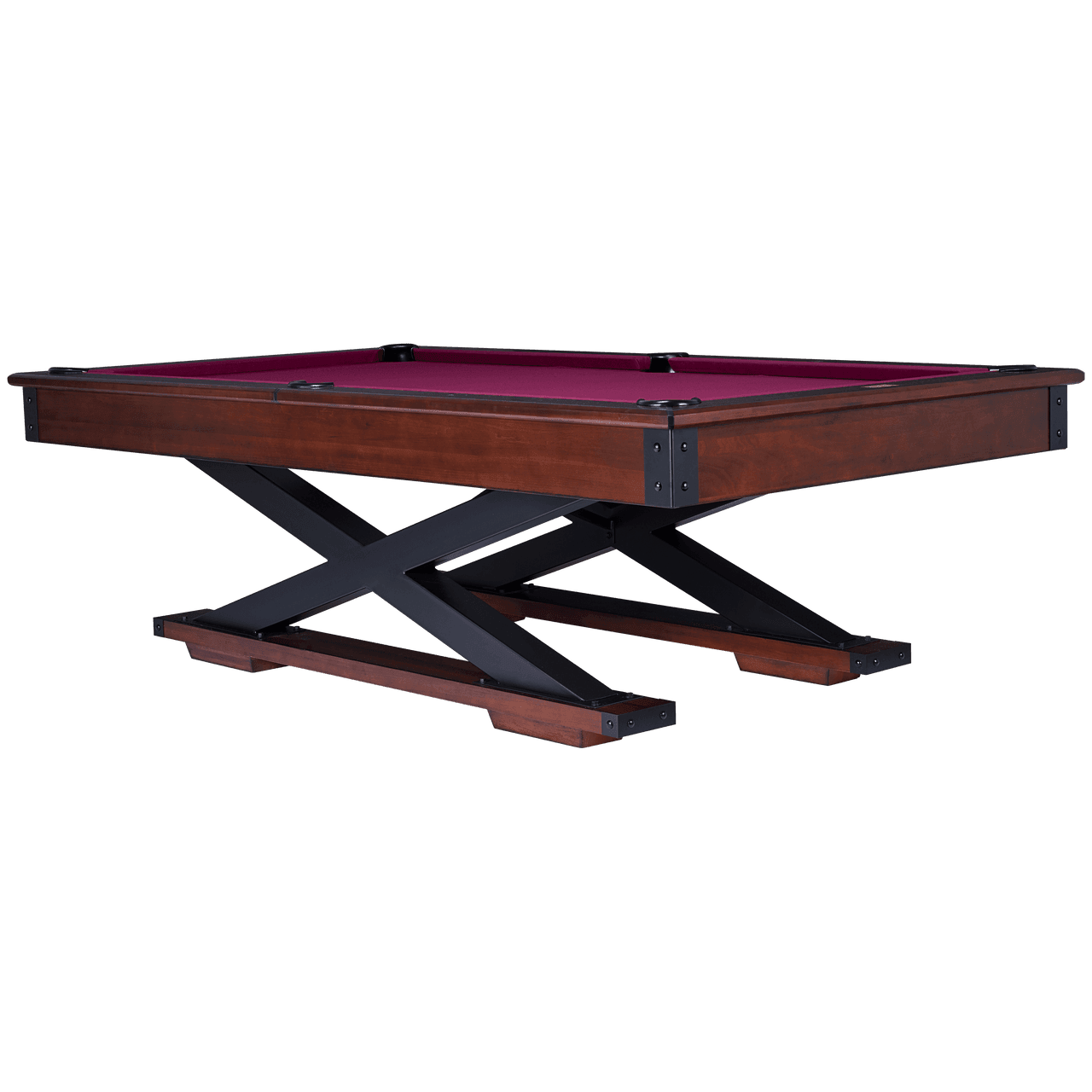 Experience the perfect blend of tradition and modern craftsmanship with the Navajo Pool Table. Designed for those who appreciate both aesthetics and performance, this 8ft x 4ft rectangular table showcases a rich brown finish complemented by a maroon felt playing surface, exuding warmth and sophistication. With its unique X-shaped base, the Navajo Pool Table adds a bold statement to any space while ensuring exceptional stability and durability for years to come.